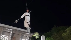 Đêm khuya vẫn ngồi xem tivi ngoài phòng khách, ba cậu con trai vừa thấy mẹ cầm 'đả cẩu bổng' liền hoảng hốt chạy thẳng vào phòng.