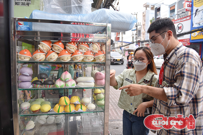 Bạn Trà Ly tìm đến xe bánh của cô Mỹ Lệ chỉ vì "bánh bao ông già Noel". (Ảnh: NGỌC PHƯỢNG)