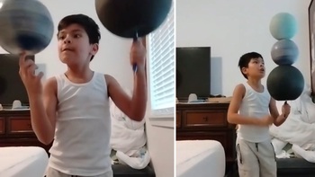 Cậu bé khiến người xem ngỡ ngàng với màn xiếc điêu luyện với nhiều quả bóng.