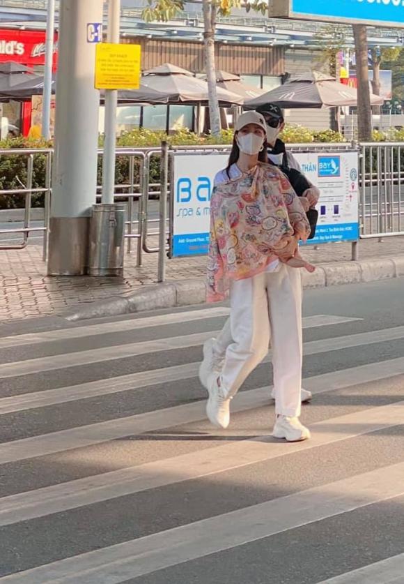 Đáng chú ý hơn cả là cách Đông Nhi bao bọc cho con gái khi tham gia hoạt động ngoài trời. Nữ ca sĩ dùng một tấm khăn khổ lớn để che chắn cho con và tiện cho con ngủ say trong đó. Phong cách choàng khăn kín mít để che cho con gái khỏi nắng của Đông Nhi cũng làm dân mạng càng "phát mê".