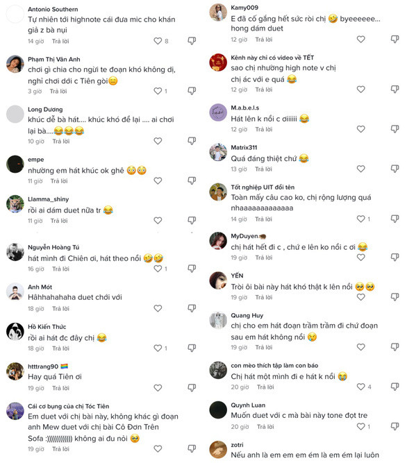 Nhiều ý kiến để lại dưới clip Tóc Tiên đăng tải bày tỏ sự bức xúc rằng đoạn điệp khúc này chỉ nghe Tóc Tiên hát thôi cũng đã khiến fan thấy khó mà lui chứ nào dám nghĩ đến việc thử sức hát. Đồng thời cũng đề nghị nữ ca sĩ nên nghĩ đến việc thực hiện một bản duet khác dễ dàng hơn cho khán giả.