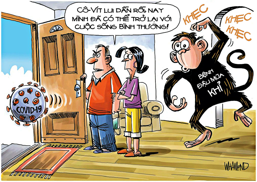 Thế kỷ 21 thiệt là… lắm bẫy! – tranh của hoạ sĩ Thổ Nhĩ Kỳ Ahmad Rahma. Hôm 7-5-2022, có ca đầu tiên nhiễm virus đậu mùa khỉ. Tới ngày 24-5, Tổ chức Y tế thế giới (WHO) vừa thống kê có 131 ca mắc đậu mùa khỉ, cùng 106 ca nghi nhiễm trên toàn cầu.