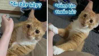 Chú mèo ngơ ngác vì phản ứng khó hiểu của cô chủ