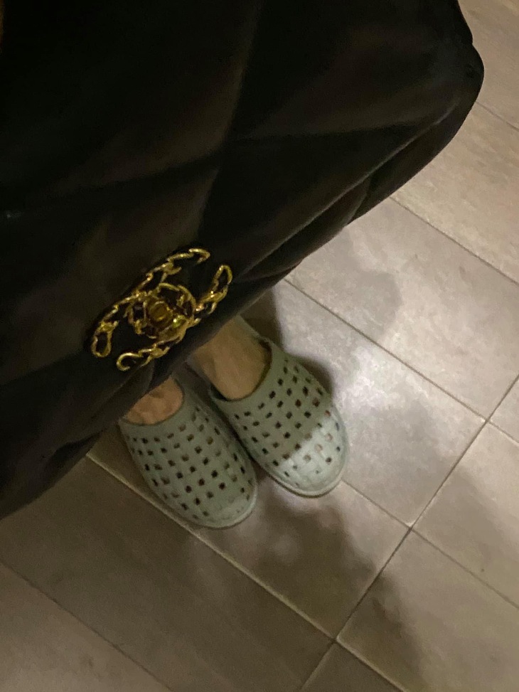 Thực tế nhìn cả tổng thể trang phục của bà xã Trấn Thành mới hiểu mẹ cô từ chối đứng cạnh là phải lắm. Nữ ca sĩ xách chiếc túi hàng hiệu gần trăm triệu bạc, diện đầm cũng xinh lung linh nhưng dưới chân lại đi đôi dép có vài chục ngàn, đúng là hài hước hệt như tính cách cô.