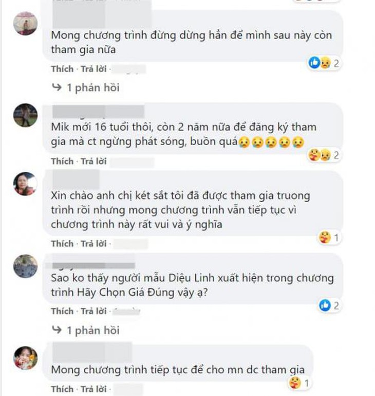 Phía nhà đài bày tỏ sự tiếc nuối vì chương trình được xem là "17 năm thanh xuân" của nhiều khán giả màn ảnh nhỏ. Số phát sóng vào ngày 26-12 cũng là số cuối cùng của Hãy chọn giá đúng: "Từ năm 2004-2020, tính năm phát sóng thì Hãy chọn giá đúng đã có tới 17 năm đồng hành cùng khán giả truyền hình trên kênh sóng VTV3.