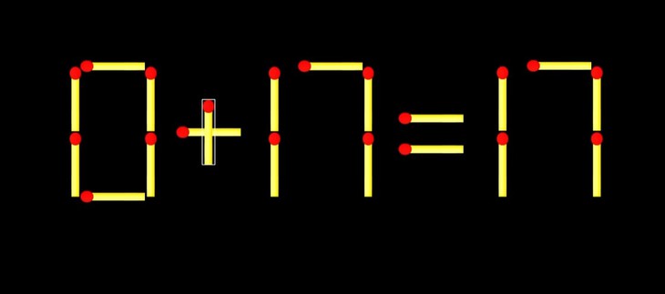 Thử tài IQ: Di chuyển một que diêm để 8+17=17 thành phép tính đúng - Ảnh 7.Thử tài IQ: Di chuyển một que diêm để 9-8=17 thành phép tính đúng Thử tài IQ: Di chuyển một que diêm để 8+17=17 thành phép tính đúng - Ảnh 8.Thử tài IQ: Di chuyển một que diêm để 17+3=4 thành phép tính đúng Thử tài IQ: Di chuyển một que diêm để 8+17=17 thành phép tính đúng - Ảnh 9.Thử tài IQ: Di chuyển một que diêm để 7+11=10 thành phép tính đúng